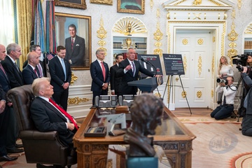President Donald Trump makes an announcement on prescription drug prices in the Roosevelt Room
