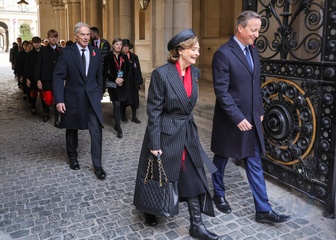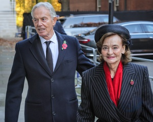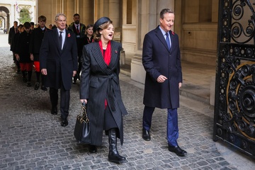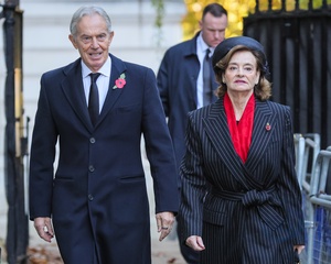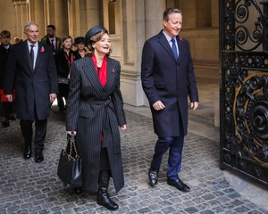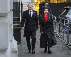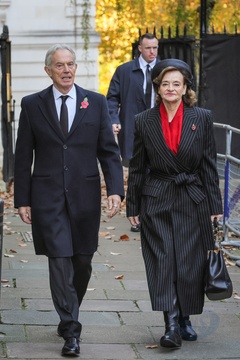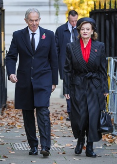 Tony Blair, David Cameron, former Prime Ministers, on Remembrance Sunday in Downing Street, London, UK