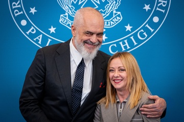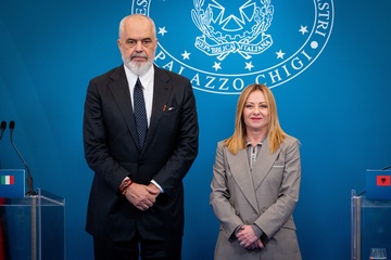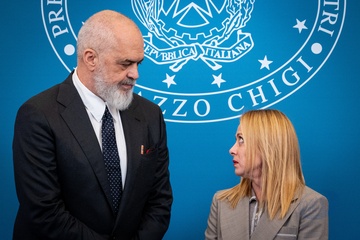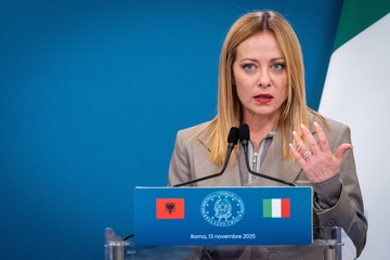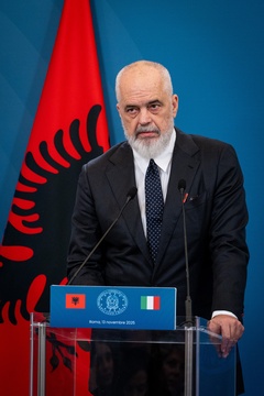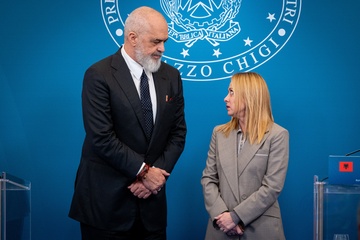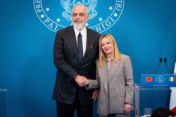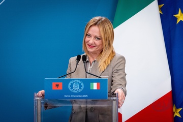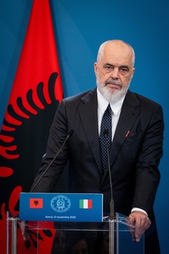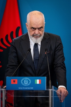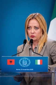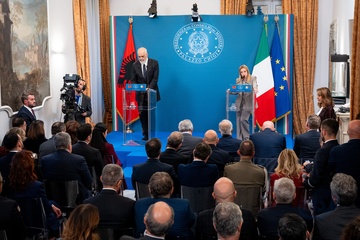 Italian Prime Minister Giorgia Meloni and Albanian Prime Minister Edi Rama address a press conference after the 1st Italy-Albania Intergovernmental Summit at Villa Doria Pamphilj in Rome, Italy, on 13 November 2025. 46