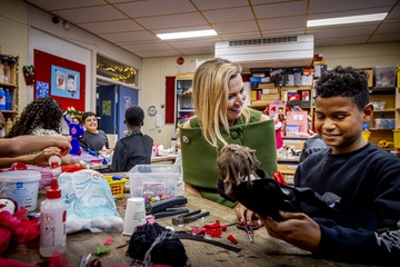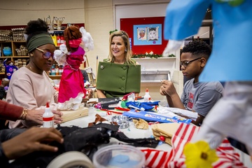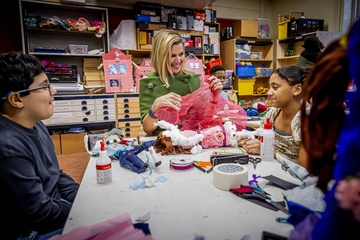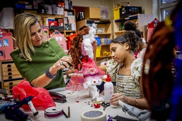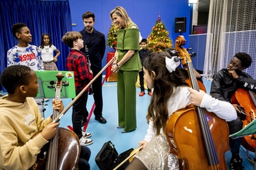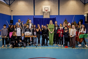 Queen Máxima visits participating school, largest school band in the Netherlands, Amsterdam, The Netherlands