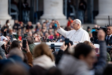 Pope Leo XIV leads a Jubilee Audience on the occasion of the Jubilee of Choirs and Choral Societies in St. Peter's Square in Vatican City, Vatican, on 22 November 2025.