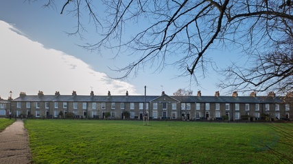 New square with its distinctive early 19th Century terraced houses. Situated in the centre of Cambridge city centre, Cambridgeshire. UK