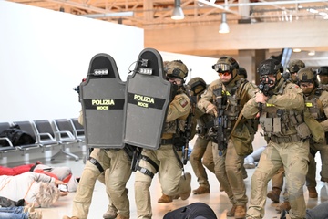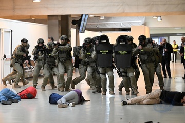 Counterterrorism exercise featuring simulated police and civil defense operations with the support of the Red Cross to test the response of hospitals in the capital. 35