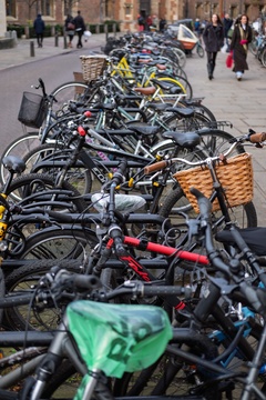 Bicycles in Trinity street in the centre of Cambridge, Cambridgeshire. UK