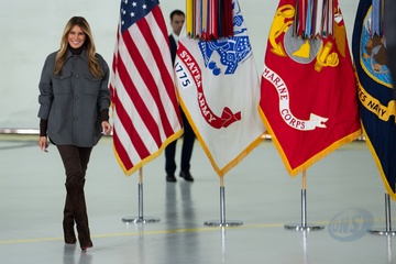 First Lady Melania Trump and Second Lady Usha Vance join the American Red Cross to deliver holiday care packages to military spouses