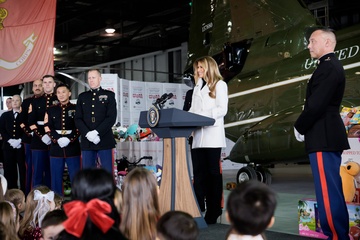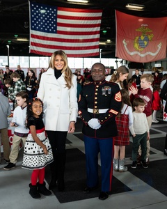 Melania Trump visits Marine Corps Base Quantico for a Toys for Tots Christmas event