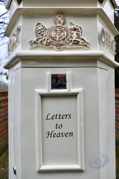 A letters from heaven post box has been decorated with a Christmas themed topper
