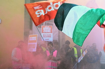 Sudd Cobas protests subcontracting and calls for a social clause in the fashion industry.