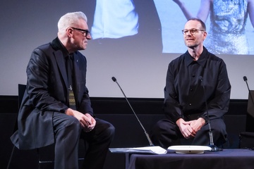 Mark Kermode and Joachim Trier on stage during Mark Kermode in 3D on Monday 15 December 2025