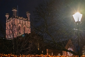 Chester cathedral at Christmas time. Chester, Cheshire, North west England.