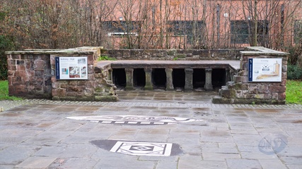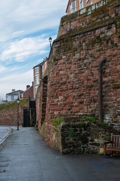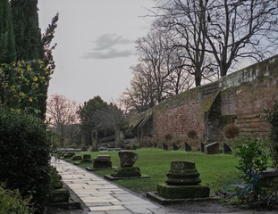 Roman garden and walls by the River Dee. Chester, Cheshire, North west England.