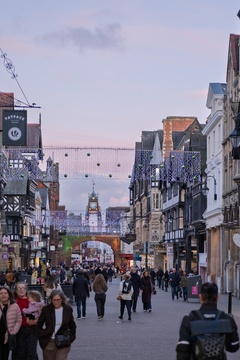 Chester at Christmas time. Chester, Cheshire, North west England.
