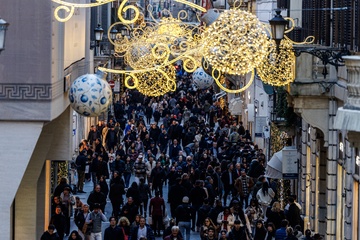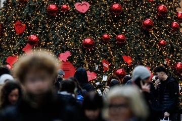 Romans and tourists in the historic center during Christmas week