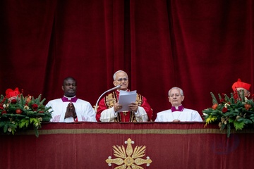 Pope Leo XIV delivers his traditional Christmas Message and ‘Urbi et Orbi’ Blessing from the balcony of St Peter's Basilica overlooking Saint Peter's Square in Vatican City, Vatican on 25 December 2025.