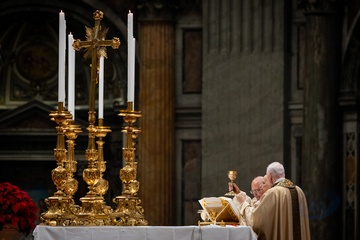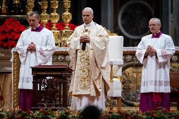 Pope Leo XIV celebrates Christmas Morning Mass in St. Peter's Basilica in Vatican City, Vatican on 25 December 2025.