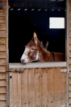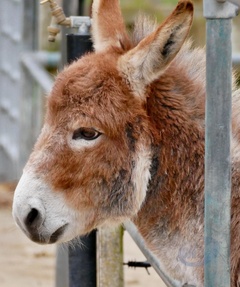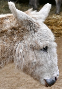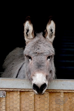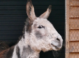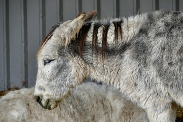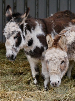 Seasonal weather, Island Farm donkeys on a cold grey day