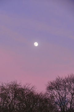 The waxing gibbous moon rise at dusk
