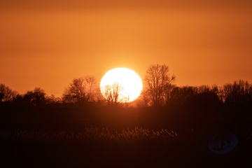 Setting sun in the fens near Ely, Cambridgeshire, UK.