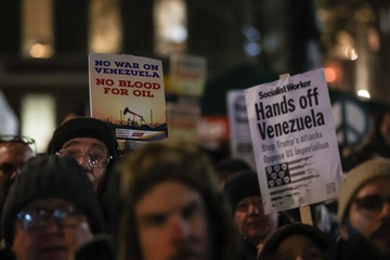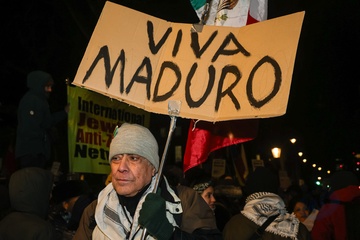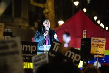Protest against US action in Venezuela outside Downing Street in London, UK, on 06 January 2026