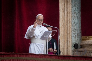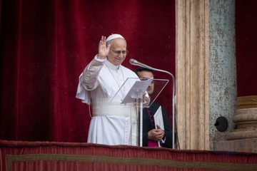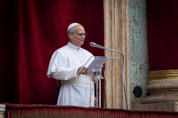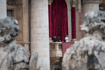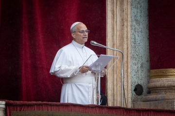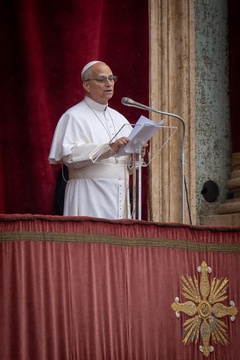 Pope Leo XIV delivers his Angelus noon prayer from the central lodge of St. Peter's Basilica on the Solemnity of the Epiphany in Vatican City, Vatican, on 06 January 2026.