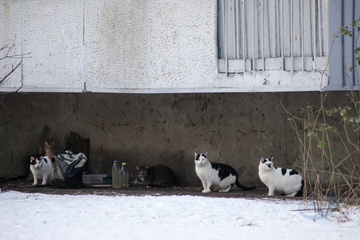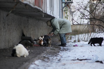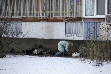 Stray animals in Kyiv in winter