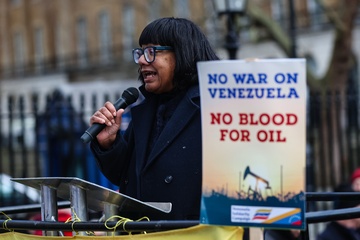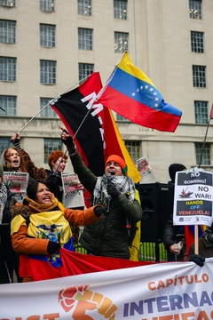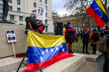 Protest against US military action in Venezuela outside Downing Street in London, UK, on 10 January 2026