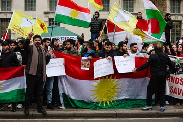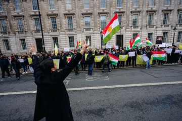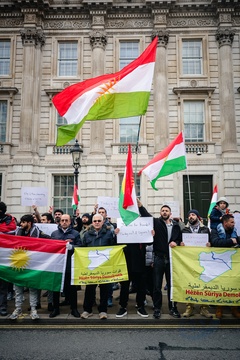 Protest against Syrian attacks on Kurds in Aleppo outside Downing Street in London, UK, on 10 January 2026