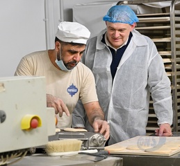 Liberal Democrat Leader Sir Ed Davey visits, Mamoosh Bakery, Newhaven, UK. 16 January 2026.