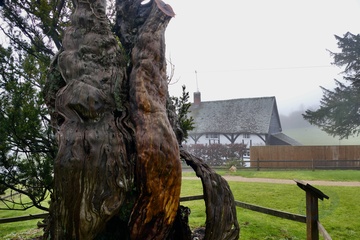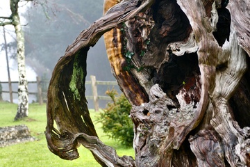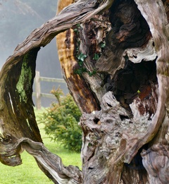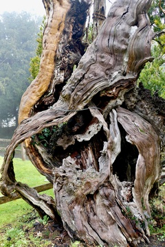 The 1000 year old Aldworth Yew tree which has been struck by lightning and blown over in a storm it is still partly alive.