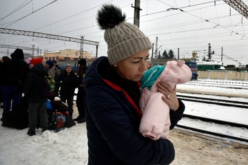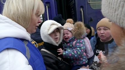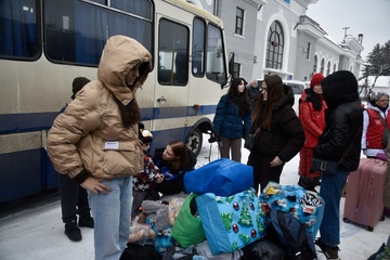 Evacuation train from frontline areas arrives at Mukachevo railway station