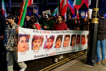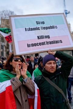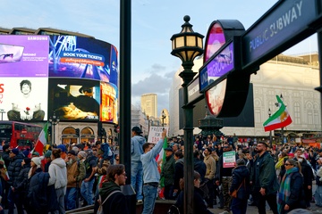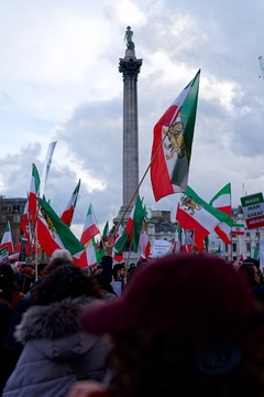 Free Iran protest. Trafalgar Square to Iranian Embassy. 17th January 2026.