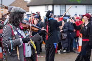 Here a straw bear parades and dances through the streets along with various Molly / Morris dancers