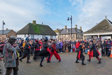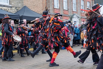 Morris dancers at Whittlesea straw bear festival,held every January in the little town of Whittlesey / Whittlesea in Cambridgeshire, near Peterborough, UK.