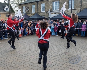 From the Cotswold's the Clausentum morris dancers perform at the Whittlesea straw bear festival,held every January in the little town of Whittlesey / Whittlesea in Cambridgeshire, near Peterborough, UK.