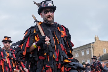 Here a straw bear parades and dances through the streets along with various Molly / Mo