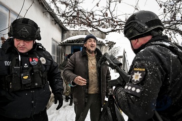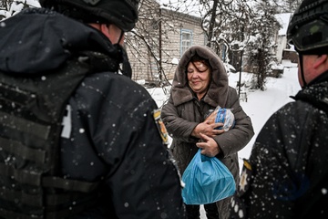 Police deliver humanitarian aid to residents of frontline Huliaipole district