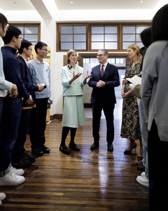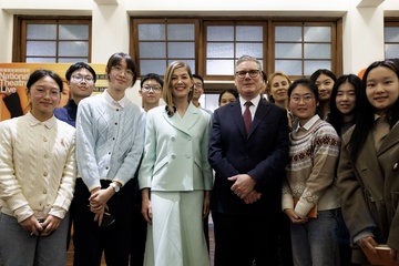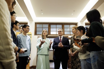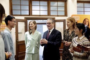 Prime Minister Keir Starmer and Rosamund Pike arts visit