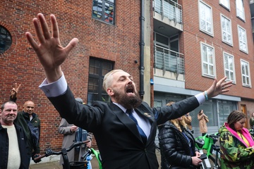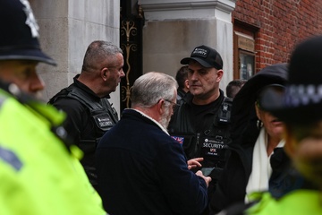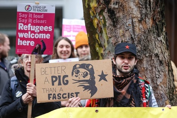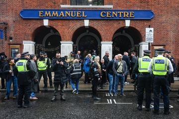 Stand Up to Racism protest against far-right Advance UK event outside Emmanuel Centre in Westminster, London, UK, on 07 February 2026