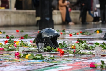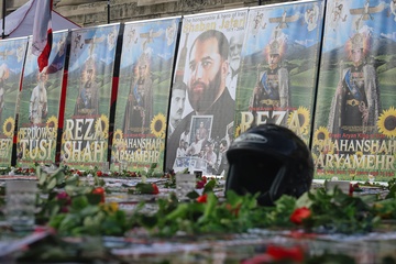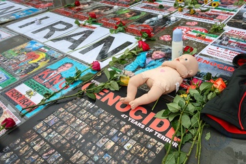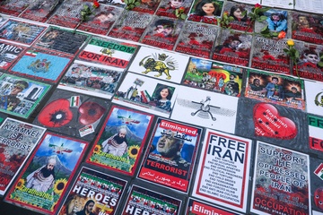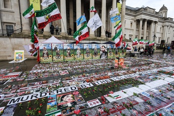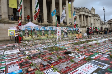 Memorial for victims of Iranian government in Trafalgar Square in London, UK, on 07 February 2026