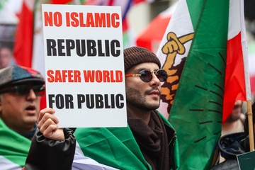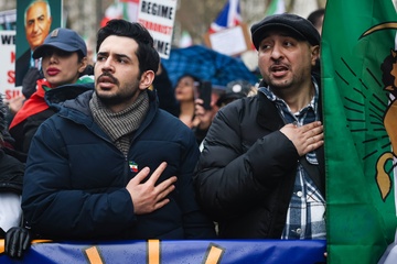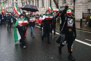 March supporting Iranian uprising outside Downing Street in London, UK, on 07 February 2026