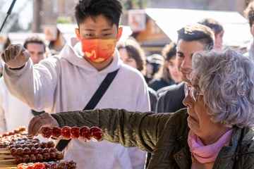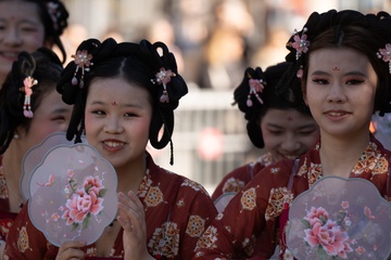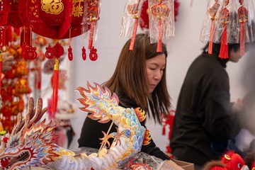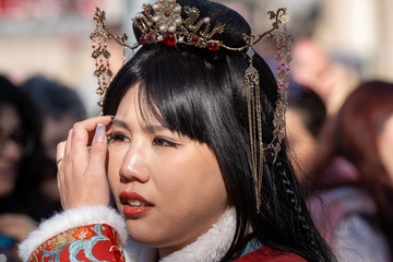 Traditional Chinese New Year parade in Barcelona, celebrating the Year of the Horse 2026.