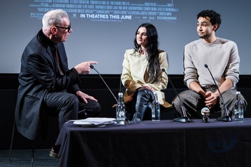 Mark Kermode, Posy Sterling and Archie Madekwe on stage at Mark Kermode in 3D on Monday 9 February 2026