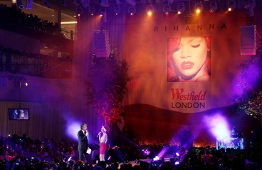 Rihanna podczas koncertu w centrum handlowym, Londyn
