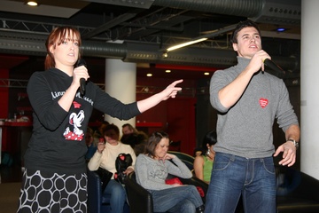 Wielka Orkiestra Swiateczne Pomocy. Karaoke z udzialem Matyldy i Mateusza Damieckich