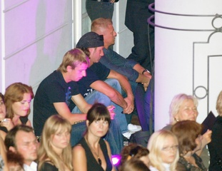 Radoslaw Majdan z kolegami ogladal pokaz z ostatniego rzedu na schodach