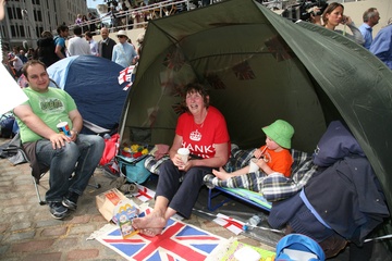 Tlumy na ulicach Londynu czekaja na krolewski slub Kate i Williama