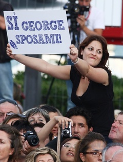 Fanka George Clooneya z transparentem