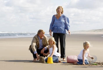 Holenderska rodzina na plazy w Wassenaar, Holandia