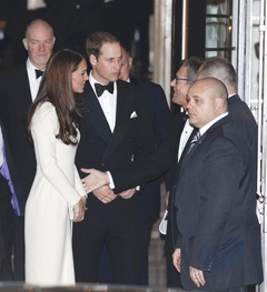 Ksiaze William z zona Kate ida na przyjecie w Claridges Hotel London