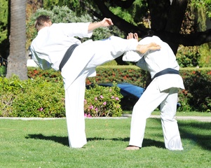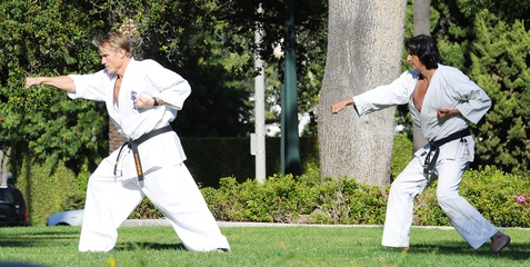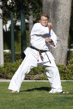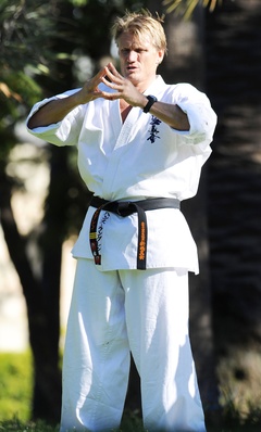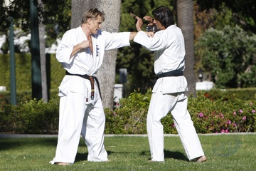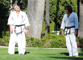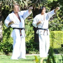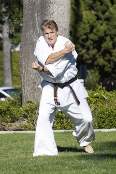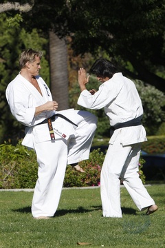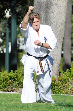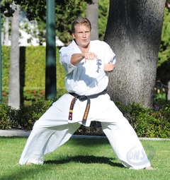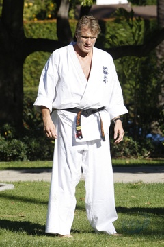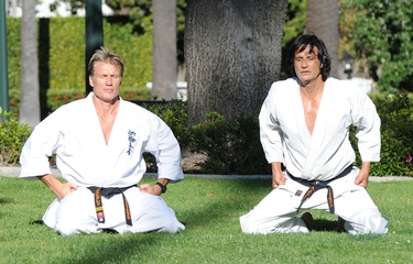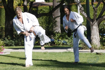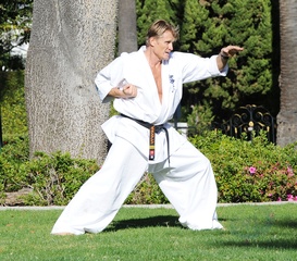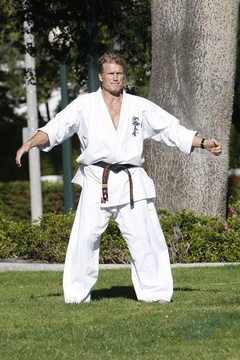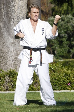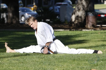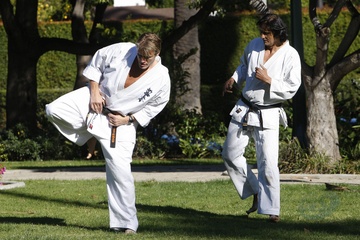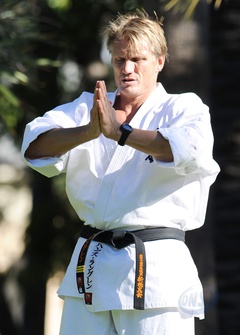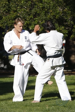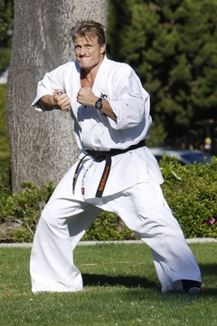 Dolph Lundgren trenuje sztuki walki w parku w Beverly Hills